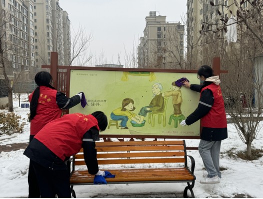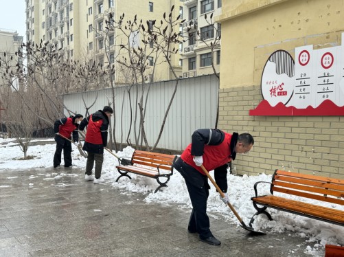 活動(dòng)中,志愿者們拿上工具,分組深入到轄區(qū)角角落落,清理轄區(qū)的環(huán)境衛(wèi)生死角。同時(shí)當(dāng)天恰逢2024年的第一場(chǎng)雪,志愿者們也帶上除雪工具積極掃雪。