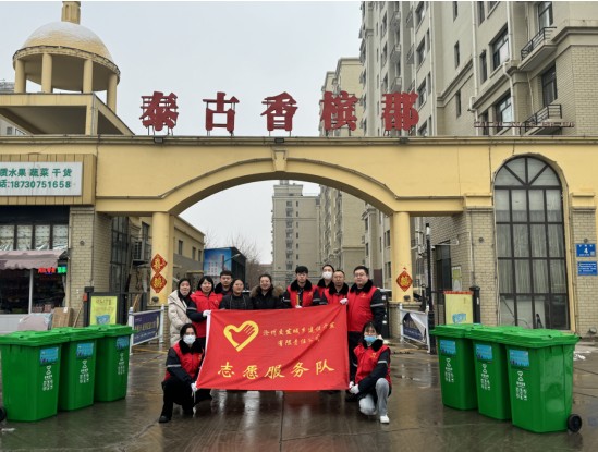城鄉(xiāng)公司領(lǐng)導(dǎo)了解情況后高度重視,第一時(shí)間為泰古香檳郡小區(qū)社區(qū)購(gòu)置了六個(gè)生活大垃圾桶,并于1月17日,組織干部職工志愿者10余人走進(jìn)泰古香檳郡小區(qū),開展“訪民情 辦實(shí)事 求實(shí)效”志愿服務(wù)活動(dòng)。