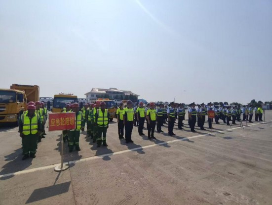 此次活動以“人人講安全、個個會應(yīng)急--查找身邊隱患”為主題,通過實(shí)戰(zhàn)演練檢驗(yàn)應(yīng)急預(yù)案,筑牢安全生產(chǎn)防線。演練模擬場景為滄廊(京滬)高速公路孟村段出現(xiàn)集中強(qiáng)降雨,同時伴有六級以上大風(fēng)。養(yǎng)護(hù)人員雨中巡查發(fā)現(xiàn)水毀險(xiǎn)情,危及道路行車安全事件。演練開始前,所有參演人員在預(yù)備會議上詳細(xì)了解了此次演練方案的設(shè)定,圍繞防汛演練的程序,明確了各單位、各小組責(zé)任和分工,確保在演練過程中各司其職,有條不紊。在演練現(xiàn)場,各單位小組分工明確,配合默契,反應(yīng)迅速有效,順利完成演練各項(xiàng)科目,達(dá)到了預(yù)期效果。