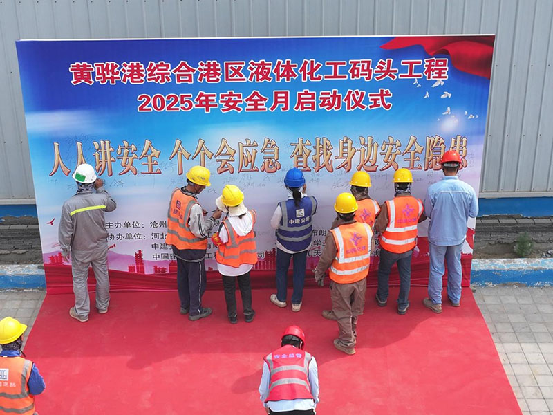 2025年6月1日,黃驊港綜合港區(qū)液體化工碼頭工程2025年安全月啟動儀式在項目現(xiàn)場隆重舉行。滄州森旭港務(wù)有限公司、施工單位、監(jiān)理單位代表齊聚一堂,共同拉開安全月活動的序幕。