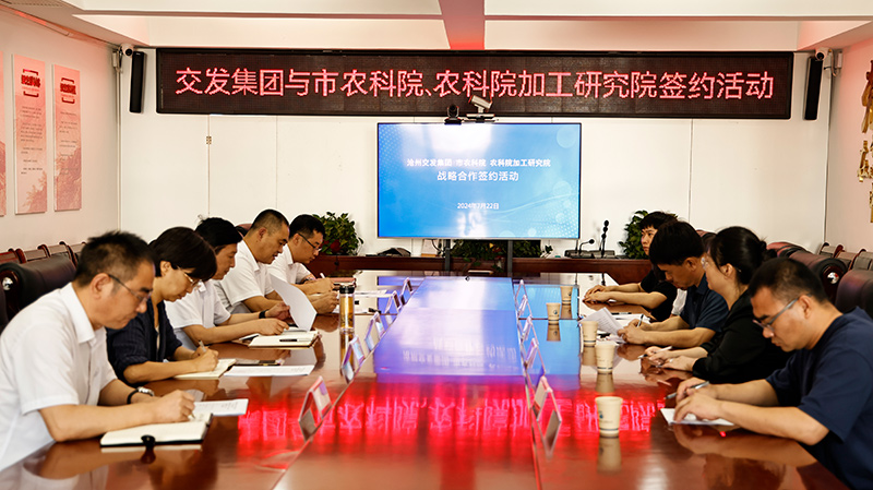 7月22日,滄州交通發(fā)展(集團(tuán))有限責(zé)任公司、滄州市農(nóng)林科學(xué)院、中國農(nóng)業(yè)科學(xué)院農(nóng)產(chǎn)品加工與營養(yǎng)健康研究院(滄州)全面戰(zhàn)略合作協(xié)議簽約活動在交發(fā)集團(tuán)舉行。交發(fā)集團(tuán)黨委書記、董事長劉俊德,滄州市農(nóng)林科學(xué)院黨委書記哈增瑞,農(nóng)科院加工研究院常務(wù)副院長董維出席簽約活動。