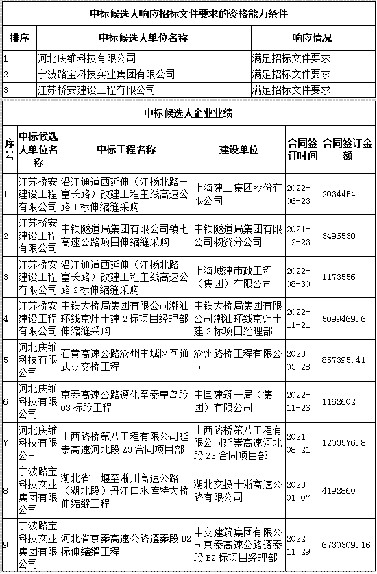 G18榮烏高速滄州段改擴建工程硅芯管、伸縮縫、橋梁支座采購二次招標(SSF2)