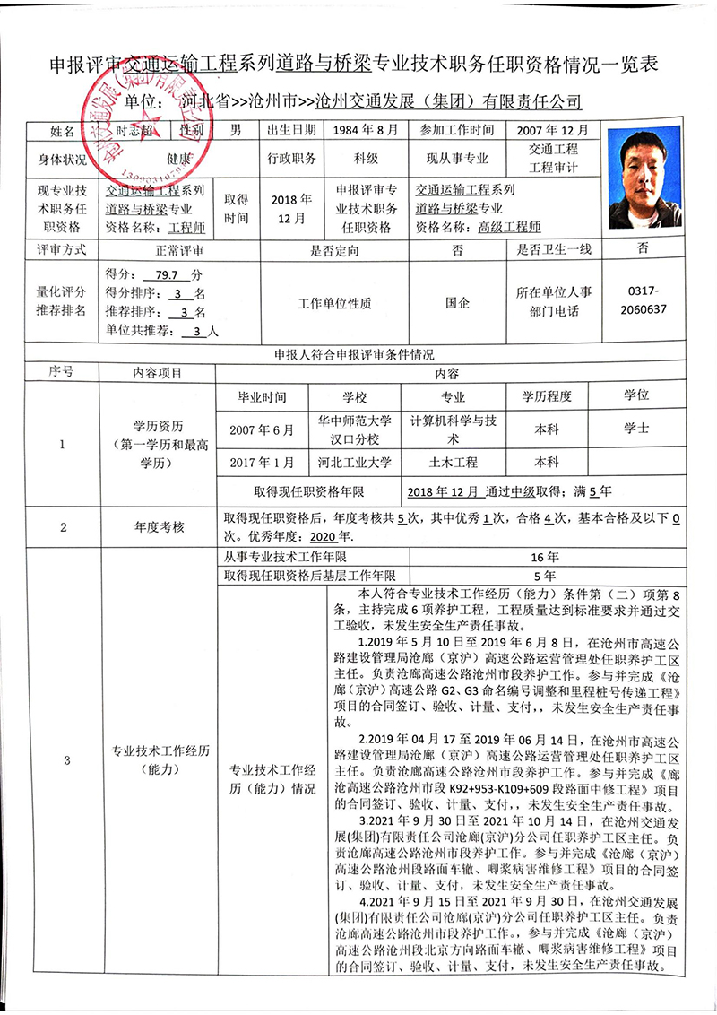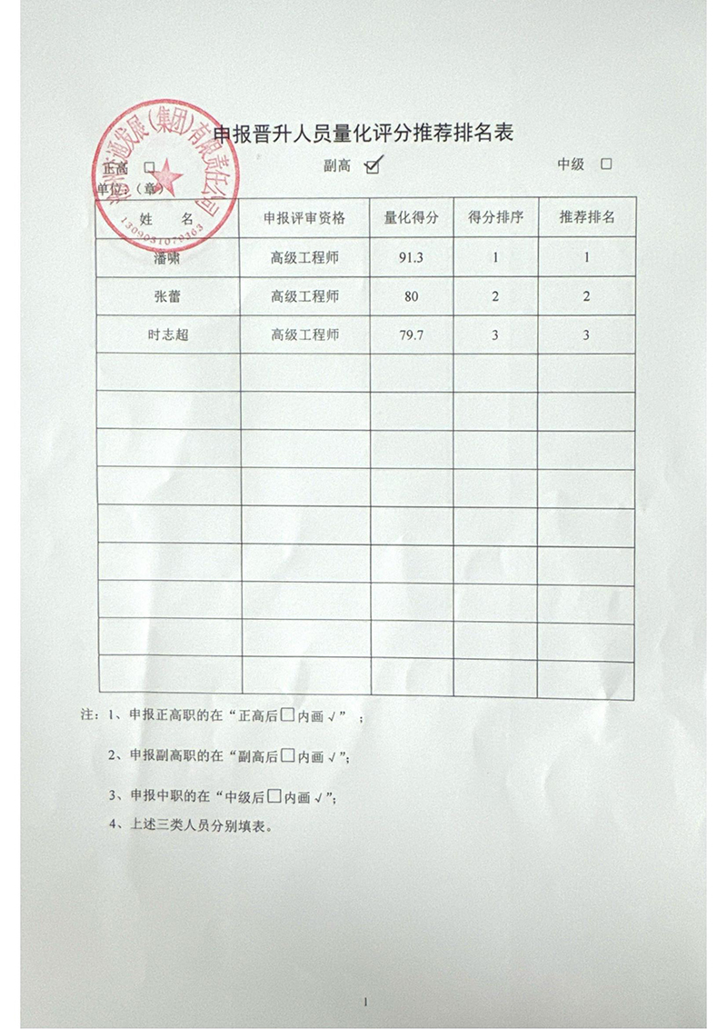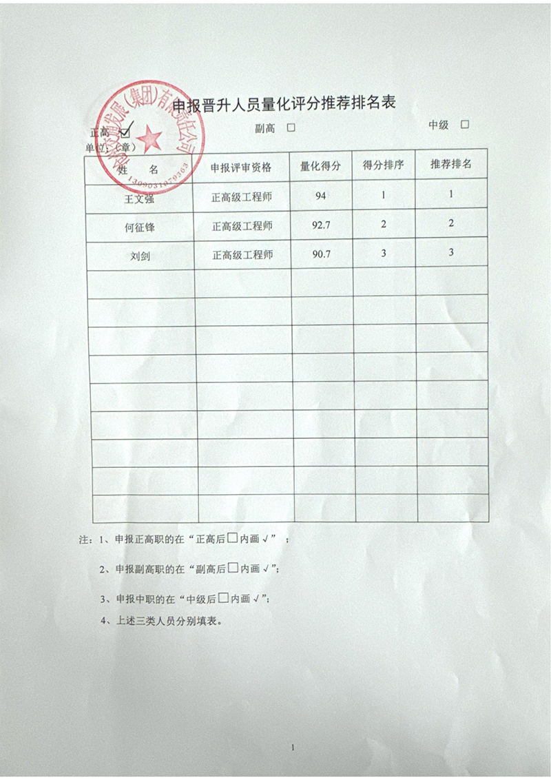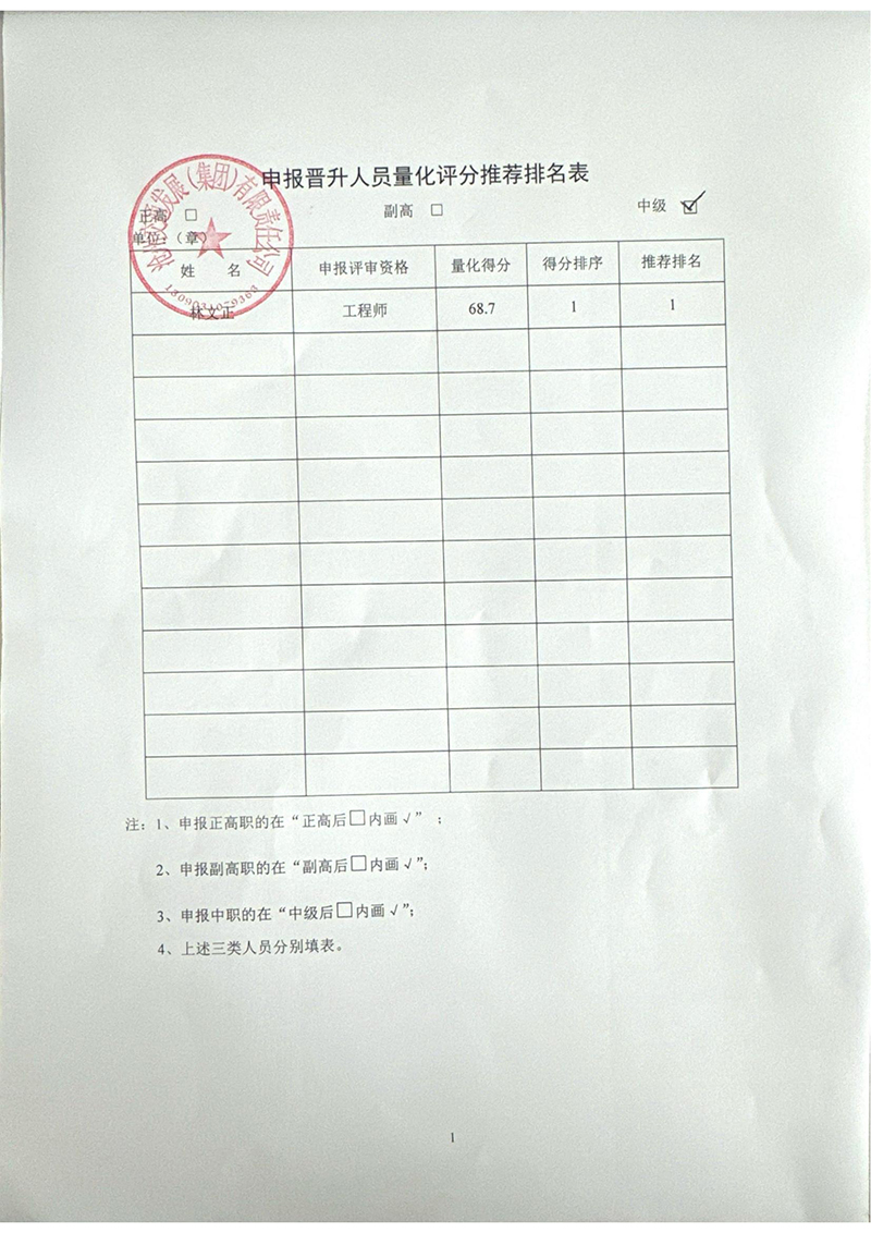 交發(fā)集團申報晉升人員量化評分推薦排名表