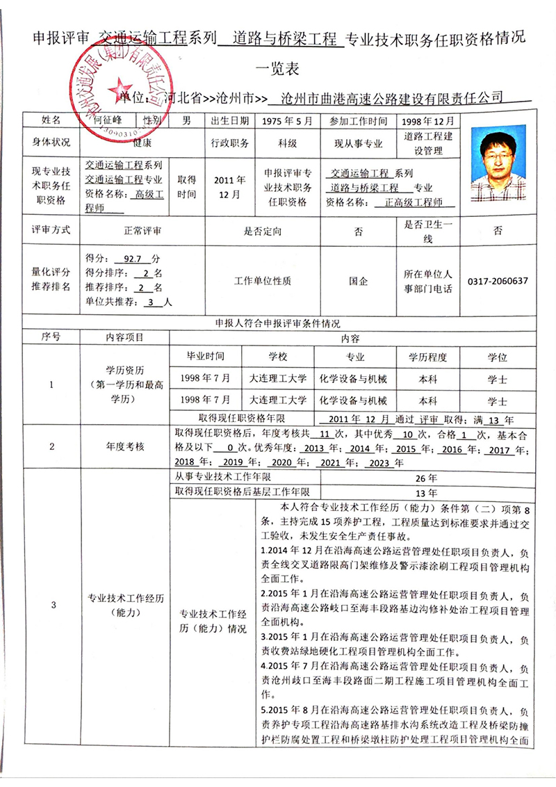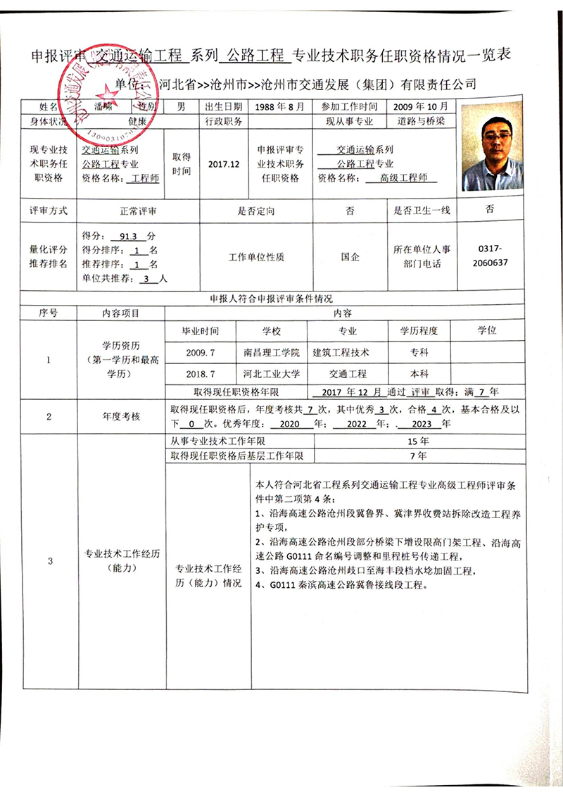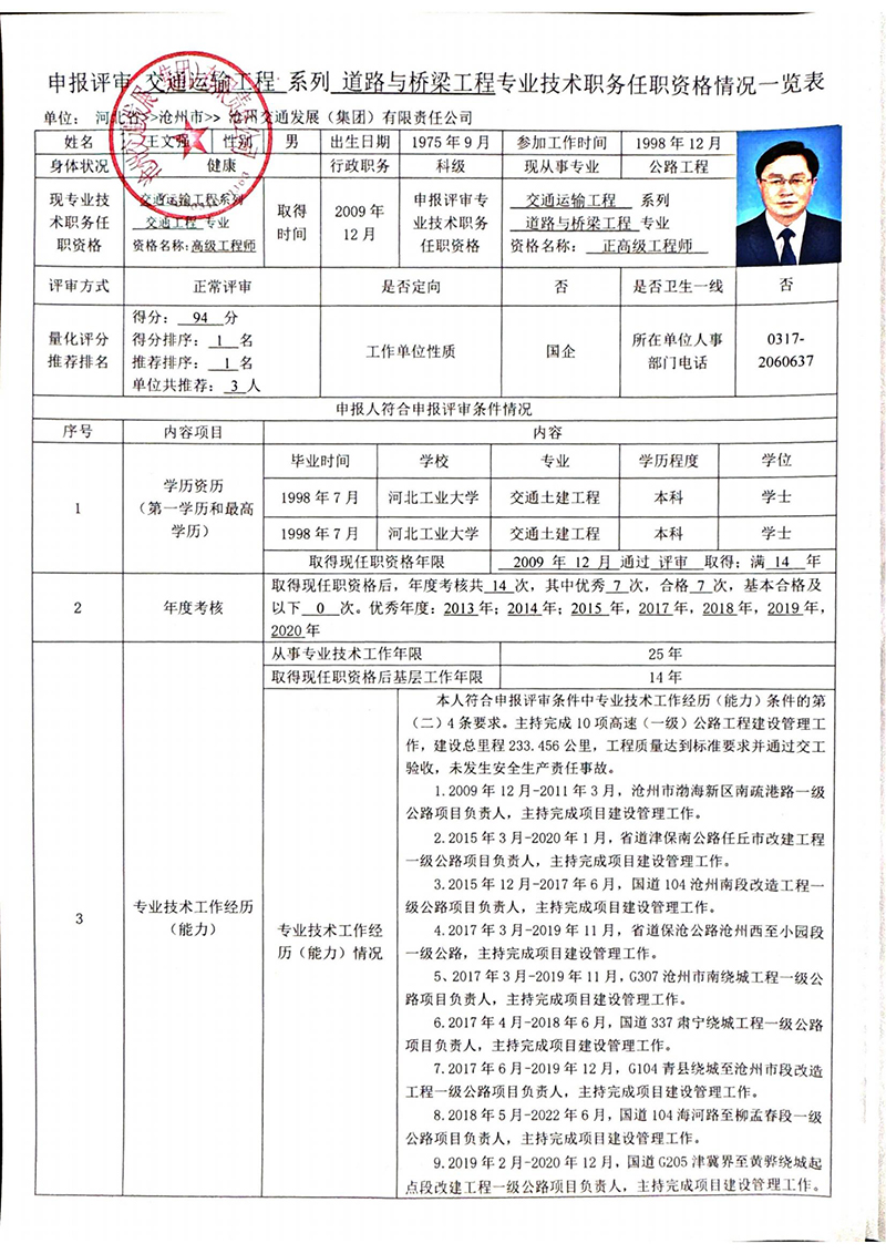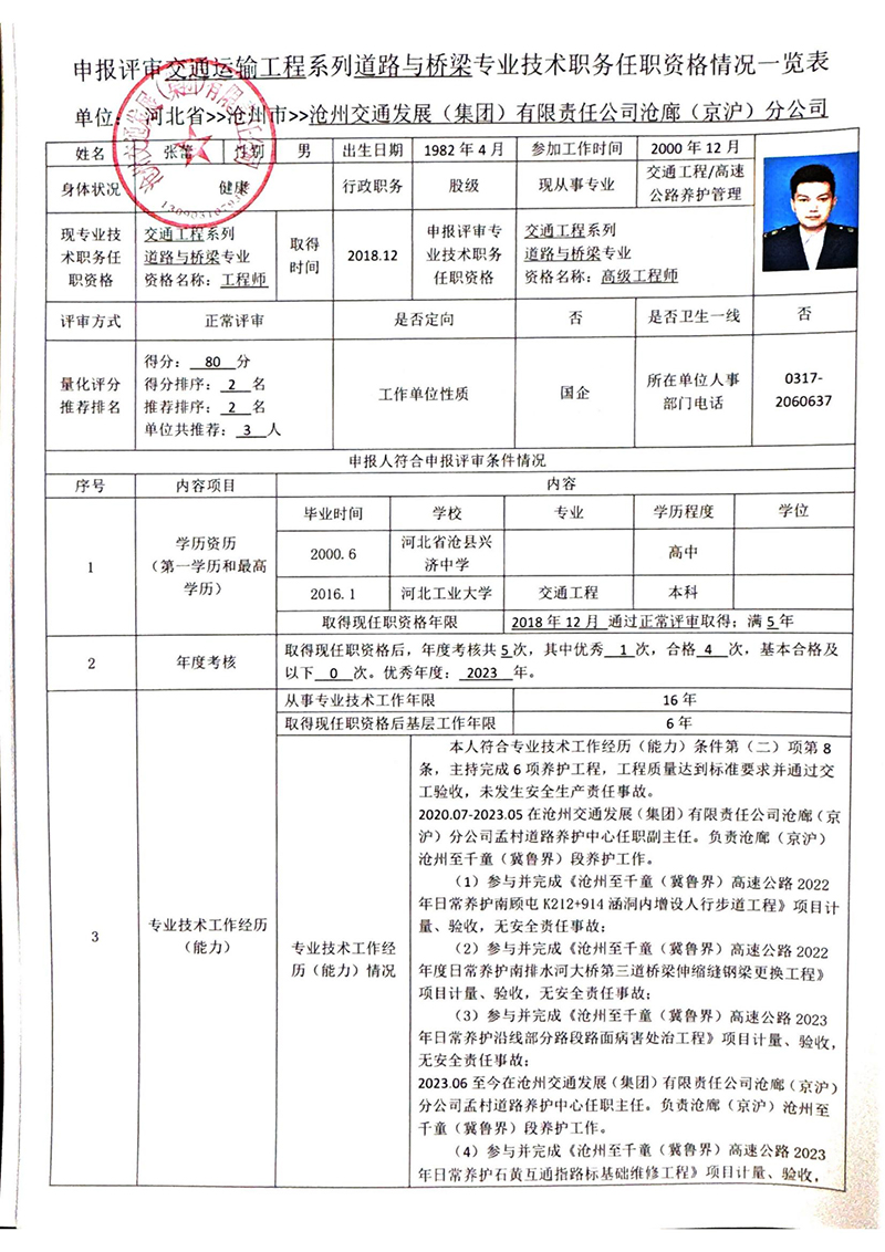 交發(fā)集團申報晉升人員量化評分推薦排名表
