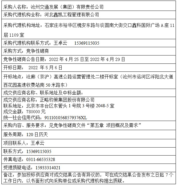 滄州交通發(fā)展(集團)有限公司企業(yè)內(nèi)部控制及風險控制咨詢成交結(jié)果公告