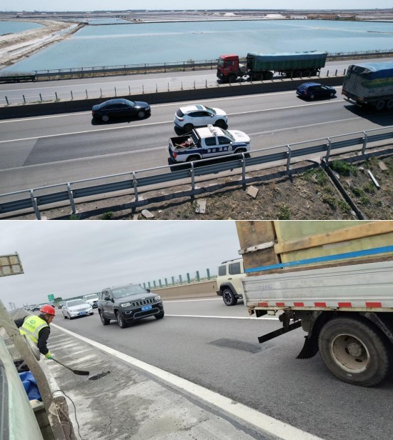 二、守護(hù)“生命線”,力保全程“不斷流”。“雙節(jié)”期間,沿海分公司職工堅(jiān)守各崗位,嚴(yán)格執(zhí)行24小時(shí)值班制度和領(lǐng)導(dǎo)帶班制度,以“在崗一分鐘,盡責(zé)六十秒”的擔(dān)當(dāng),守護(hù)道路暢通。節(jié)前及假期,分公司領(lǐng)導(dǎo)班子靠前指揮,帶領(lǐng)業(yè)務(wù)部室人員下沉一線進(jìn)行安全保暢督導(dǎo),推動(dòng)各項(xiàng)安全保暢措施落到到位。各收費(fèi)站在崗人員全員上崗,車道全開,疏導(dǎo)員穿梭車流,引導(dǎo)客貨分行,ETC車道高效運(yùn)轉(zhuǎn),通行效率大幅提升。道路養(yǎng)護(hù)中心采用“路面+無人機(jī)+視頻”三維立體巡查模式,累計(jì)開展道路巡查40余次,無人機(jī)巡檢9次,巡查里程超4500余公里,投入保暢人員170余人次,清理散落物210余次,對雨天路面水毀病害進(jìn)行應(yīng)急搶修5次,全力保障社會(huì)公眾安全出行。